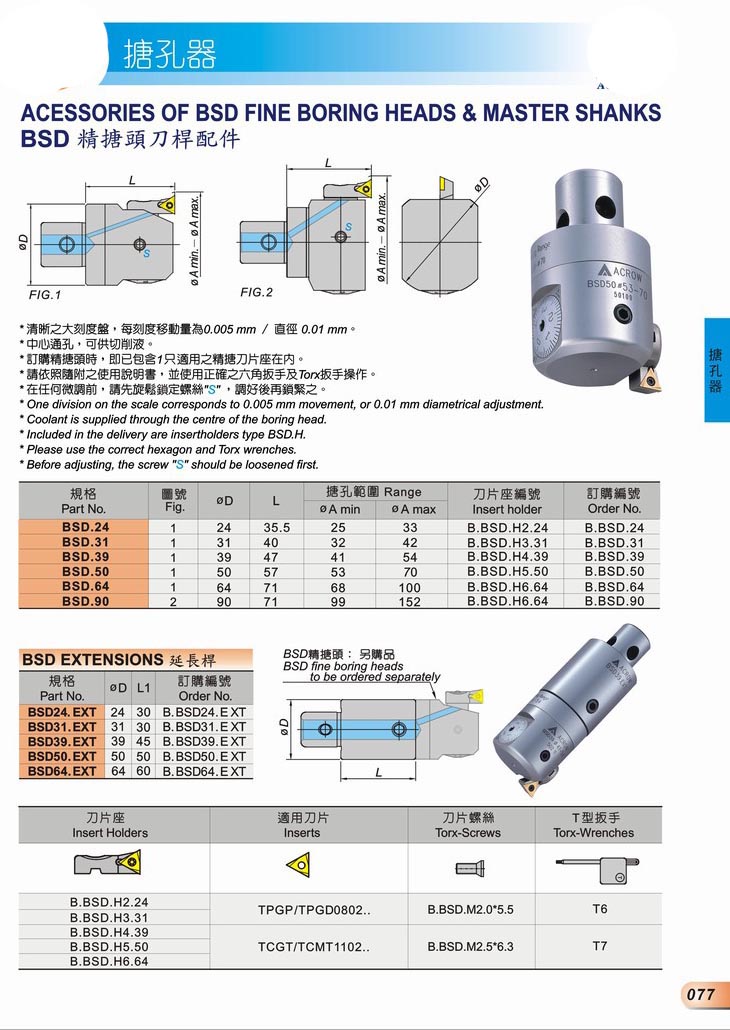 產品詳情 Product details首頁 - 台湾ACROW丸荣精密搪刀 - BSD精搪头刀桿配件