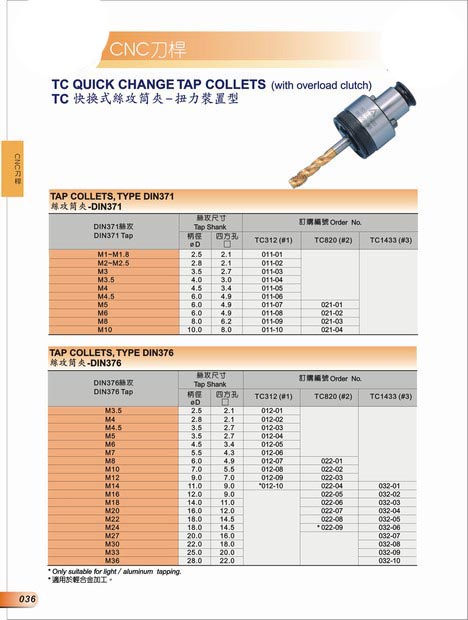 名稱:  TC快速式丝攻筒夹-扭力装置型