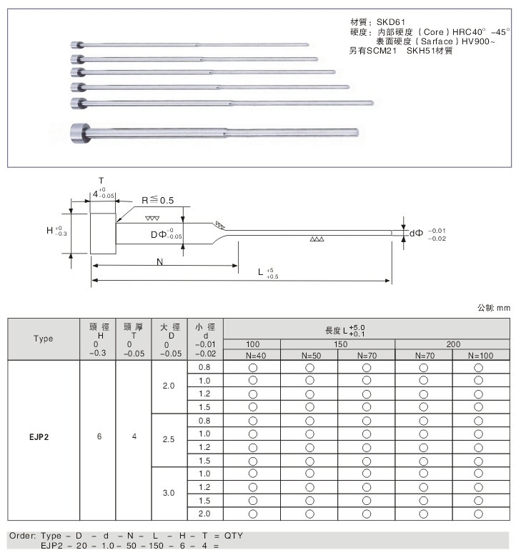 產品詳情 Product details首頁 - 顶针/套筒/成品梢类 - 双节顶针