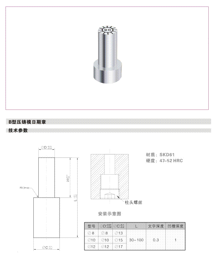 產品詳情 Product details首頁 - 新增产品系类 - B型压铸模日期章